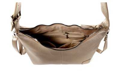 Deze mooie middelgrote damestas is handig en makkelijk mee te nemen. De binnenzijde van deze fraaie damestas is voorzien van diverse vakken waarvan 2 afsluitbaar met rits. Aan de bovenzijde een rits om het geheel af te sluiten. Verder is er een vakje aan de achterkant van de tas die afsluitbaar is met een rits. De tas wordt geleverd met een lang hengsel en een kort geweven hengsel.
