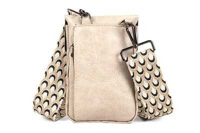 Kampen is een stylisch telefoontasje met studs van fijn formaat om overal mee naar toe te nemen. Dit telefoontasje bestaat uit een vak waar iedere soort mobiele telefoon goed in past. Het hoofdvak wordt afgesloten door een envelopflap met magneetsluiting. De geweven schouderband / bag strap geeft dit stylische tasje een unieke look. Aan de achterkant van het tasje zit een klein vakje afgesloten met rits. De perfecte manier om kleine kostbaarheden veilig te bewaren bewaren.