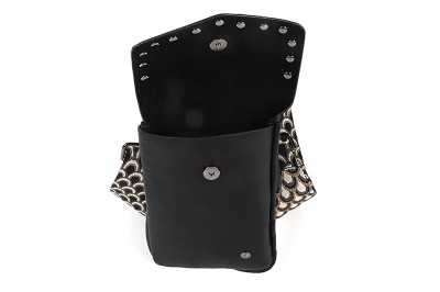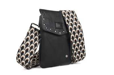 Kampen is een stylisch telefoontasje met studs van fijn formaat om overal mee naar toe te nemen. Dit telefoontasje bestaat uit een vak waar iedere soort mobiele telefoon goed in past. Het hoofdvak wordt afgesloten door een envelopflap met magneetsluiting. De geweven schouderband / bag strap geeft dit stylische tasje een unieke look. Aan de achterkant van het tasje zit een klein vakje afgesloten met rits. De perfecte manier om kleine kostbaarheden veilig te bewaren bewaren.